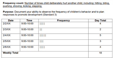 - Frequency: How often do you see this skill or behavior? If you are observing a child who has tantrums, 1 a day before naptime is much different than 10 per day.